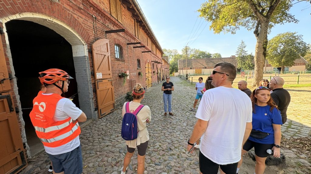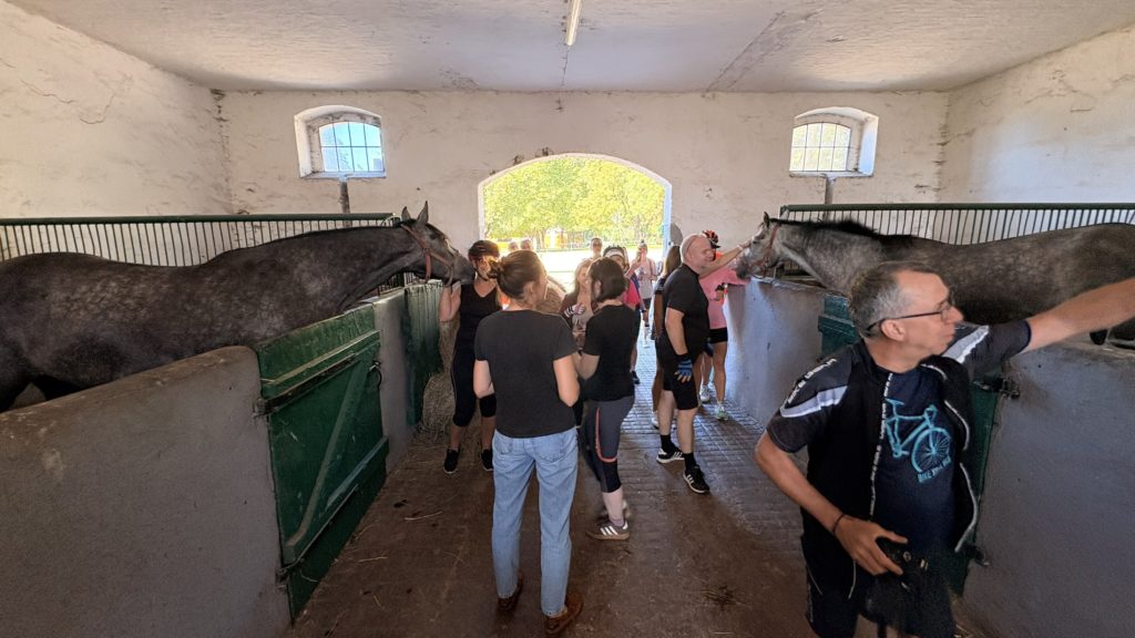 W Rzecznej uczestnicy zatrzymali się przy lokalnej stadninie koni, która od lat stanowi ważny punkt rekreacyjny i edukacyjny w okolicy, wysłuchali jej historii i poznali wszystkich czteronożnych mieszkańców! Przy okazji uczestnicy poznali historię hodowli koni trakeńskich, które niegdyś były dumą tego regionu i ważnym elementem jego dziedzictwa.