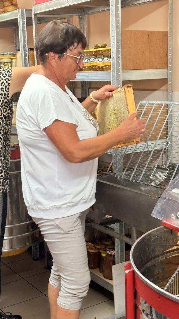 Właściciele gospodarstwa, Barbara i Jan Hałajko, to prawdziwi pasjonaci, którzy od lat z oddaniem opiekują się swoimi pszczołami i propagują wiedzę o roli, jaką te niezwykłe owady odgrywają w naszym ekosystemie. Z ogromnym zaangażowaniem oprowadzili gości po pasiece, pokazując ule, sprzęt pszczelarski oraz proces pozyskiwania miodu – od kwiatów po słoik. Ich autentyczność i miłość do natury sprawiły, że spotkanie miało niezwykle ciepły, rodzinny charakter. 🐝🍯
